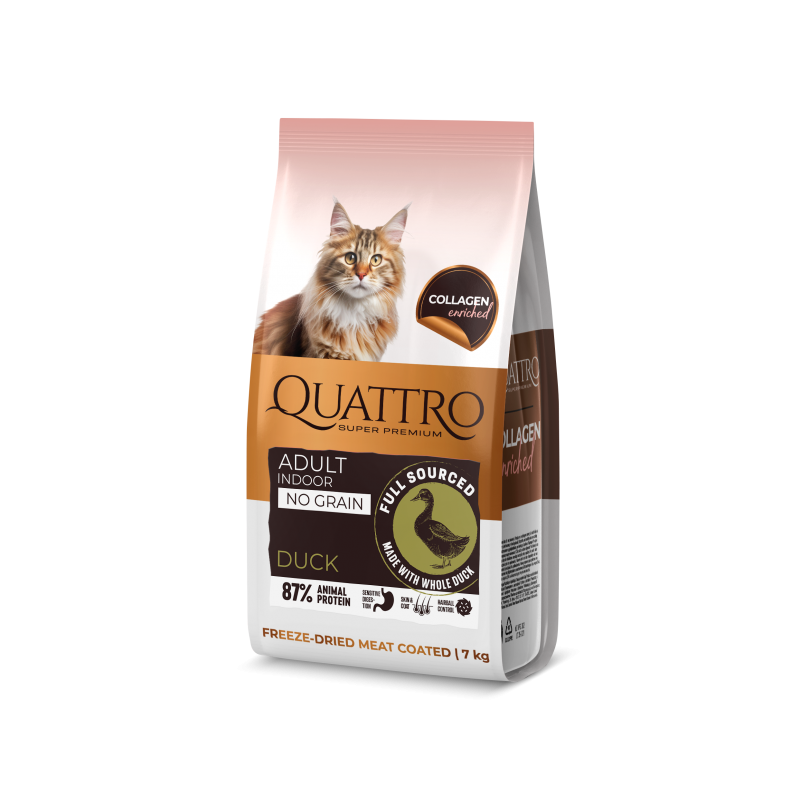 Раціони Quattro виготовлені з використанням спеціальної технології «покриття ліофілізованим м’ясом». Це інноваційне рішення дозволяє вкривати крокети ліофілізованим м’ясом, збагачуючи їх природними корисними речовинами та гарантуючи, що ваш улюбленець полюбить їх.