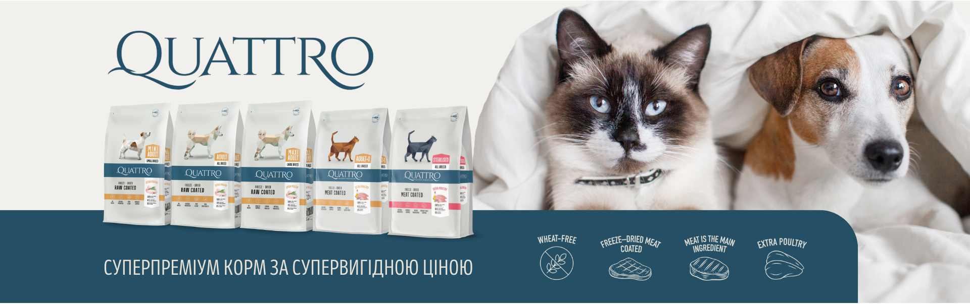 Спішимо повідомити вам про новий корм у нашому асортименті - це бренд супер- преміальних кормів QUAT..